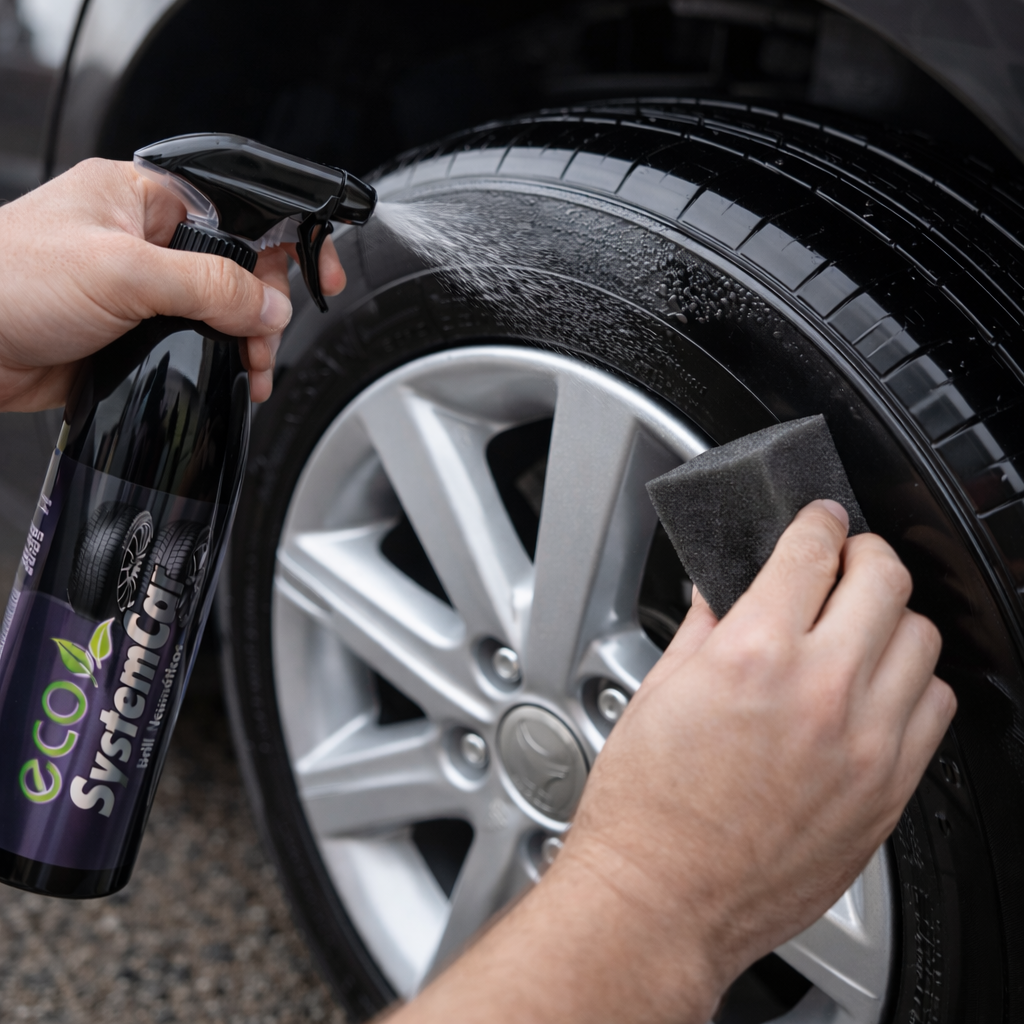 Abrillantador de Neumáticos es un abrillantador y protector específico para neumáticos diseñado para devolver a la goma un color negro profundo y uniforme, mejorando de forma inmediata la estética general del vehículo. Su fórmula actúa limpiando, acondicionando y protegiendo el neumático, dejando un acabado visual atractivo que realza la presencia del coche desde el primer momento.