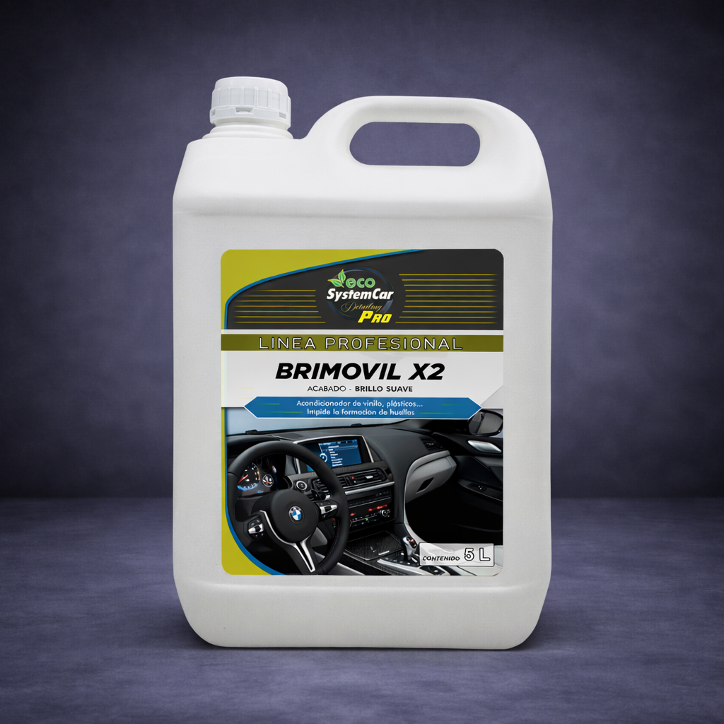 Brimovil X2 Limpiador de Salpicaderos Acabado Brillo Suave es un limpiador y protector profesional para salpicaderos y superficies interiores del vehículo, formulado para ofrecer una limpieza eficaz combinada con un brillo suave y satinado. Su acción elimina polvo, suciedad ligera y restos del uso diario, aportando un acabado cuidado que realza los materiales sin llegar a resultar excesivamente brillante ni artificial.