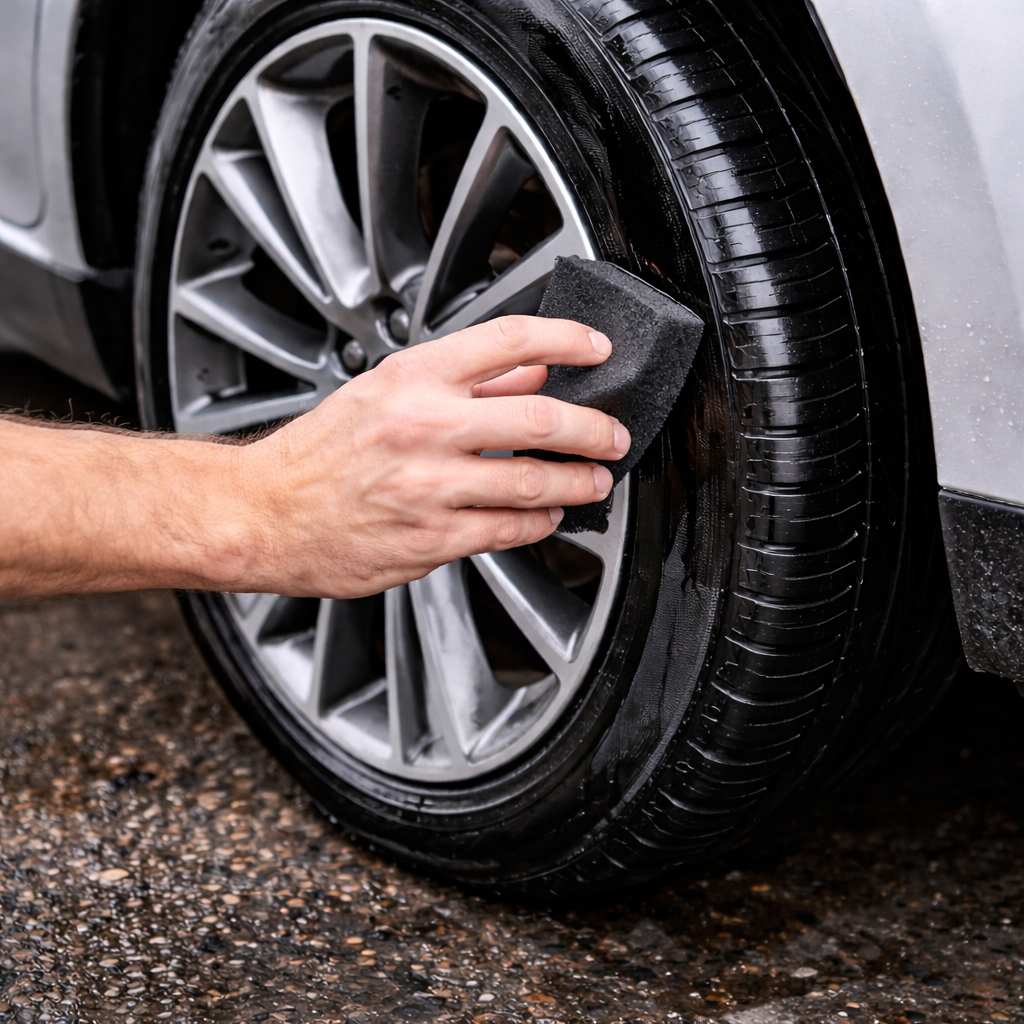 Utilizar el producto puro aplicándolo directamente sobre el neumático mediante pulverización, asegurando que quede uniformemente repartido por toda la superficie. Para un acabado más controlado, puede extenderse con una esponja o aplicador específico.