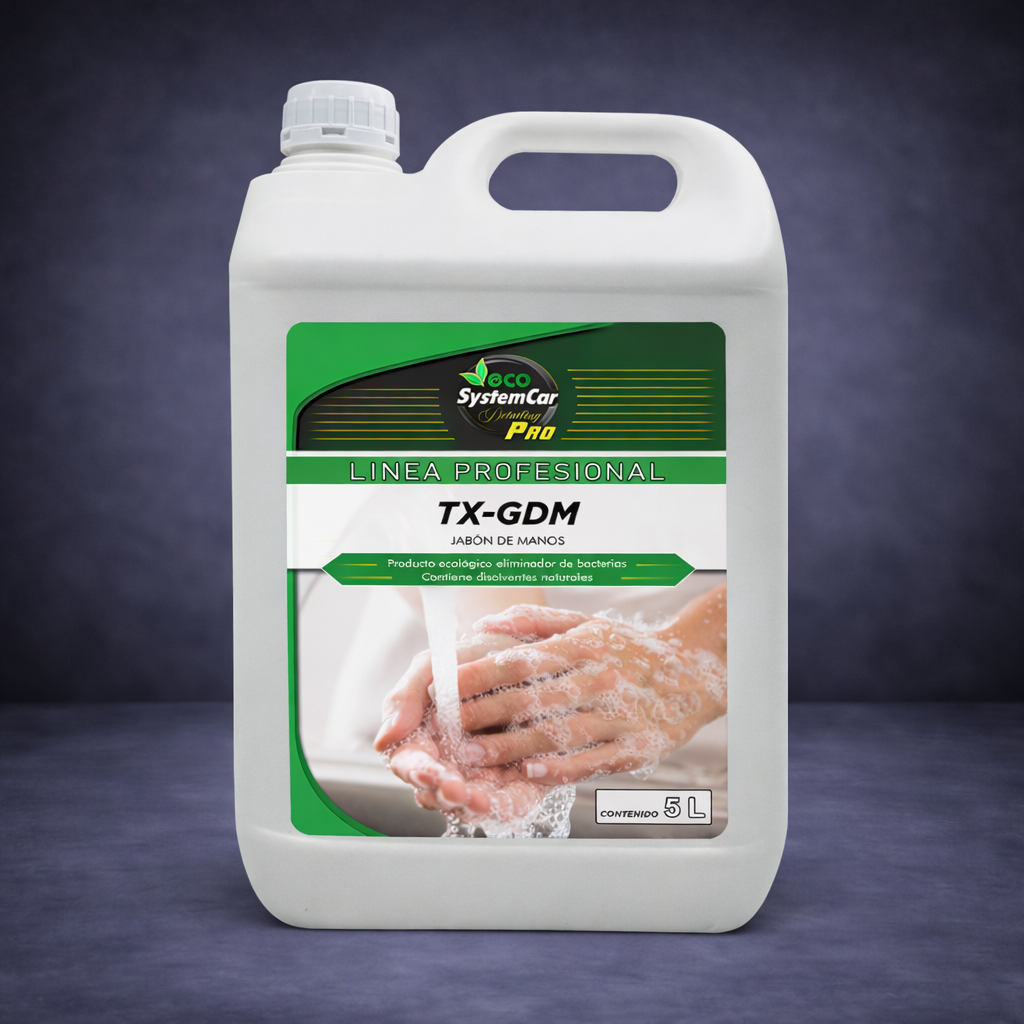 TX-GDM es un jabón de manos ecológico formulado para ofrecer una limpieza eficaz sin comprometer el cuidado de la piel ni el respeto por el medio ambiente. Diseñado con ingredientes biodegradables y componentes de origen responsable, este producto representa una alternativa sostenible frente a jabones convencionales.
